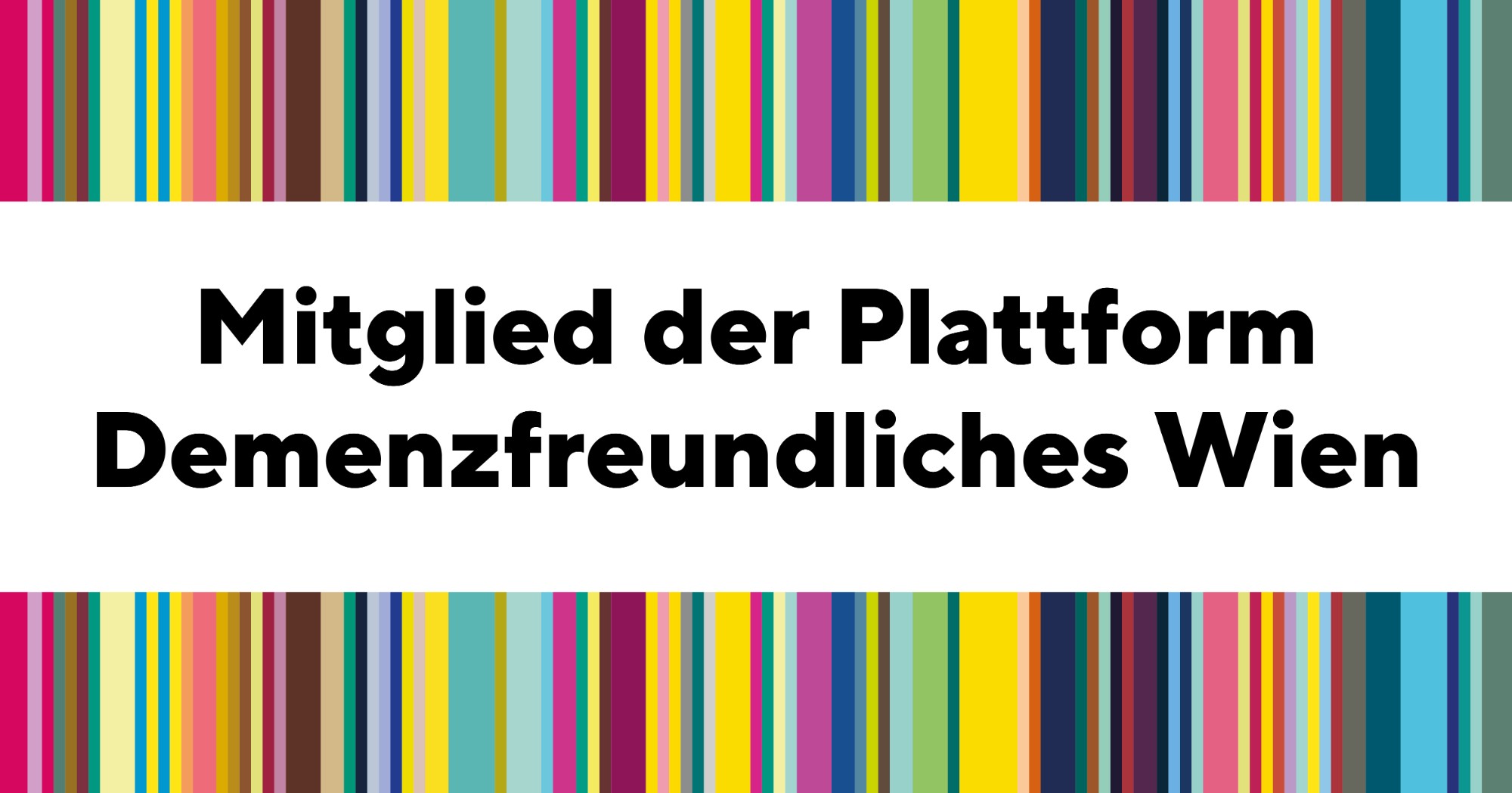 Bunte Striche im Hintergrund, darüber ein weißer Balken und darin die Überschrift: Mitglied der Plattform Demenzfreundliches Wien